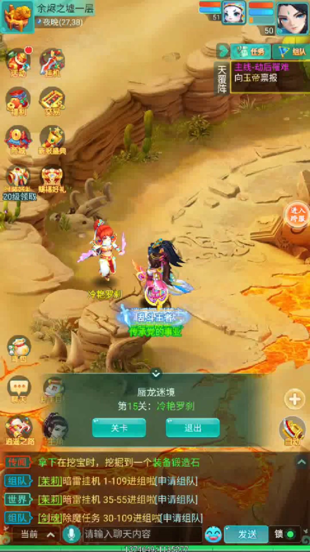 请配合视频观看。视频已上传B站,逍遥情缘游戏圈,逍遥情缘TAPTAP论坛 今天有几个比较重要的任务 下面为详细说明,这里是答案。已经会的可以不看 ( 一、蜃龙迷境打到18关左右(50级目标) 二、地府还魂副本打法(50级目标) ) 蜃龙迷境: 昨天讲到了15关。今天讲15到20关吧。 15关: 购买一个封印仙君+一个黑无常或者瑶,基本稳过。 这里我不想用金币换银币,所以直接采用原始阵容尝试。 主怪