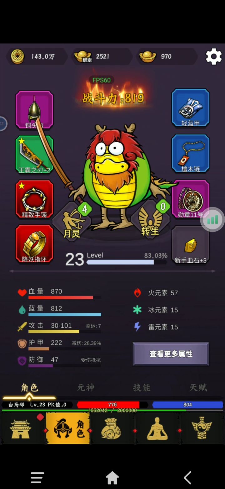好久没分享攻略了,这么久,游戏也改版了挺多,给萌新分享一下职业攻略。自从出了根基之后,现在这游戏职业有且只有一个:火战士,不要头铁玩法师道士了,效率低火战士不止一点半点。技能首先是技能,技能一般都是四技能,五技能,六七技能那是氪佬专属,本文不讨论。四技能选择羁绊冰凝霜华,即破盾斩+魄冰刺+狂风斩+冰刃斩。无它,目标多,加成高,算是性价比最高的一组羁绊了。把技能元素转换成火元素,需要几十个蛋