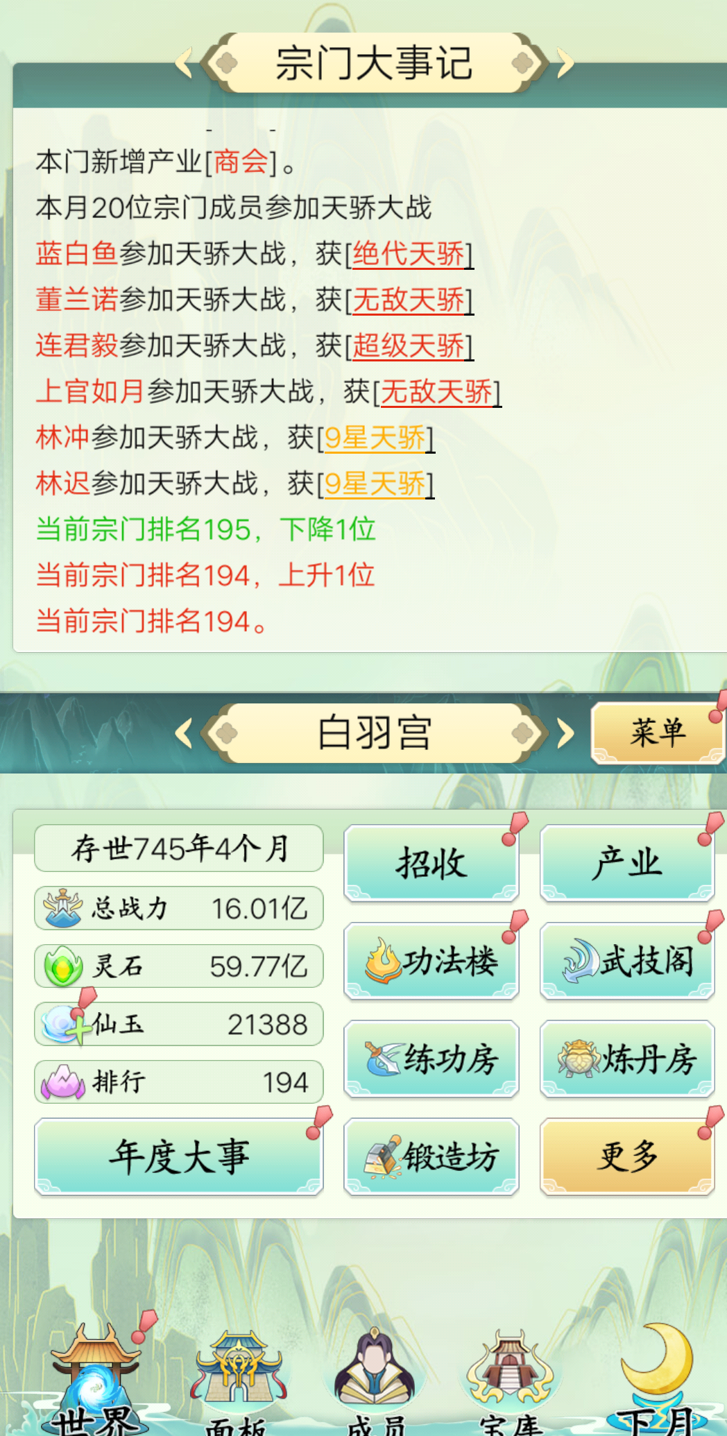 宗主大人们每日最关心的三个事情:更新了吗?活动有吗?能付费吗?在这中秋佳节即将到来之际,小仙有2个好消息要告诉大家:1、节后回来我们会更新版本,将会上线两个新功能——神秘空间和议事殿,可以大大期待一下哦2、9.18-9.22,开启5天福利活动,每天登陆即可领取。注意福利仅限当天领取哦,少登一天错过一个亿另外,游戏开测后,收到了很多热心玩家的建议反馈,每字每句都是对我们的鞭策和鼓励。我代表全