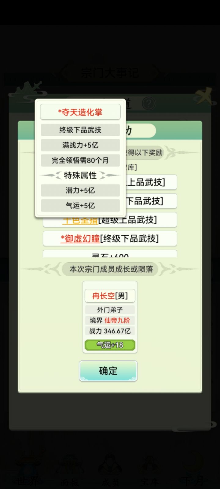 好家伙,这超级宗门出来用得是什么算法?收服不了,毁灭不了,无法互动,纯属浪费游戏资源和手机电量…看看,凡带“神”或“圣”字的,都是超级宗门…