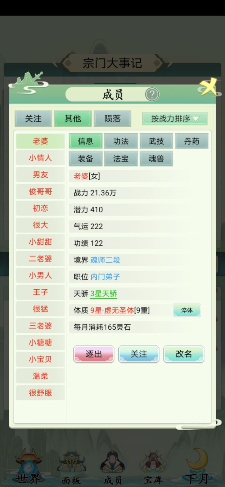 好家伙,这超级宗门出来用得是什么算法?收服不了,毁灭不了,无法互动,纯属浪费游戏资源和手机电量…看看,凡带“神”或“圣”字的,都是超级宗门…