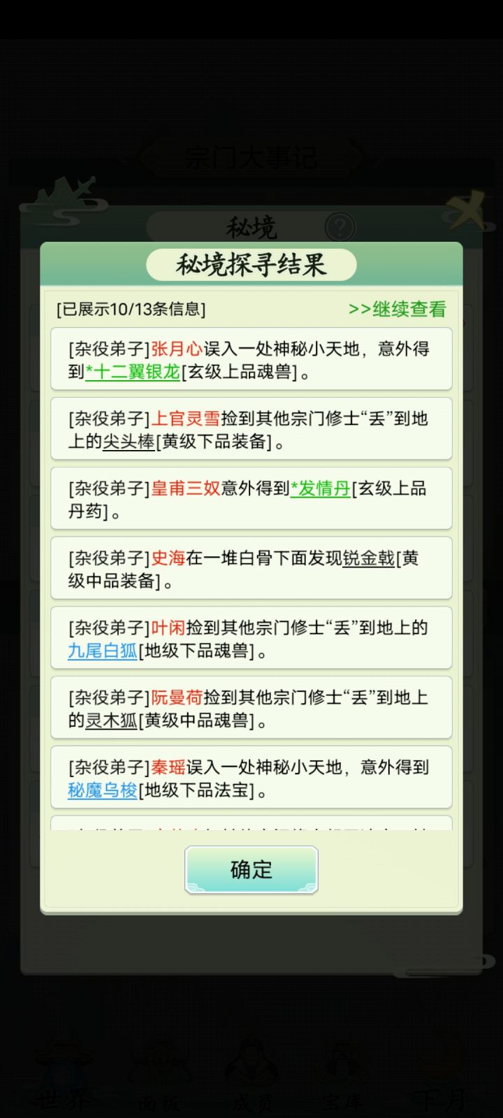 这游戏最简单的最简单的玩法估计就是我这种,开局直接拉满十个人,就开启一年一次的宗门大比,然后就一直点下一个月,直到下一次宗门大比,反正宗门大比给的功法都是神品起步,比藏书阁的好多了,藏书阁建进都不用进,一直宗门大比到能升内门,然后升级宗门收人,接着比,外门大比开都不开,外门弟子可以直接逐出去,用来招杂役开大比,等内门弟子够了就内门大比,等白嫖够了功法再把内门弟子送上去,就算不去藏书阁和拍卖会,战力也不会低,还省灵石和玉