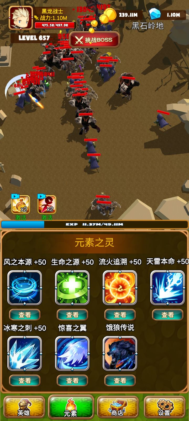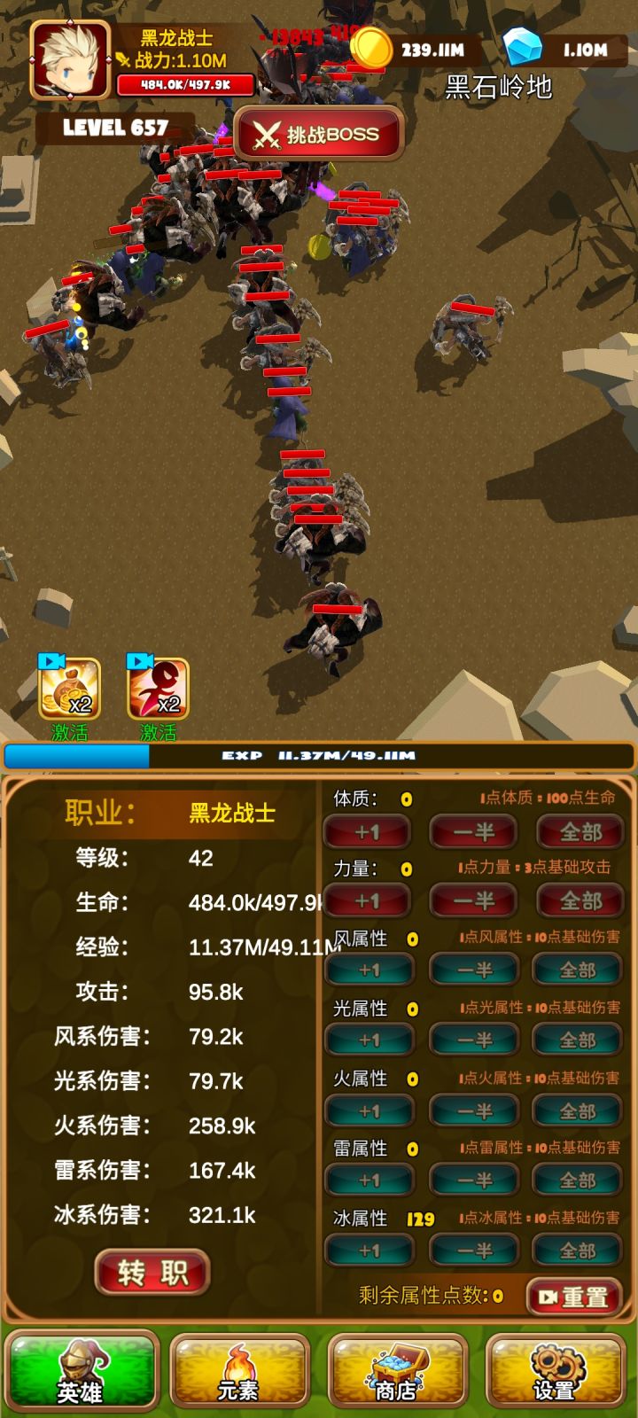 2.游戏内容比较匮乏,只有加点和升级技能,剩下的就是看广告拿钻石双倍掉落双倍时间加速
