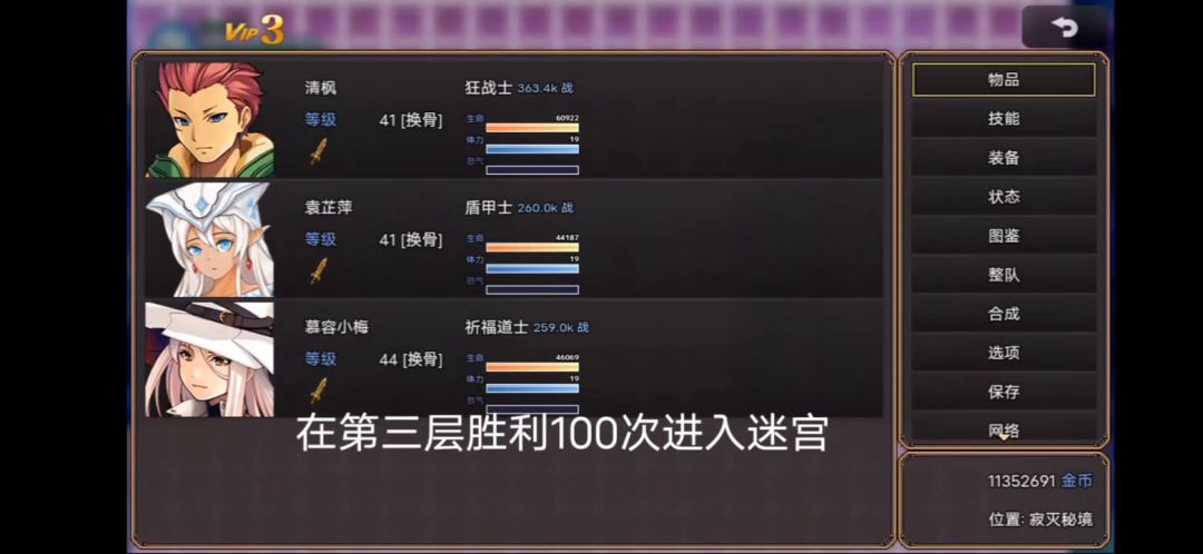 简单的装备配置就能轻松通关外围的最终BOSS 不需要太多技巧~属性到了~一切随意~当然唯一需要你回复属性达到10%左右