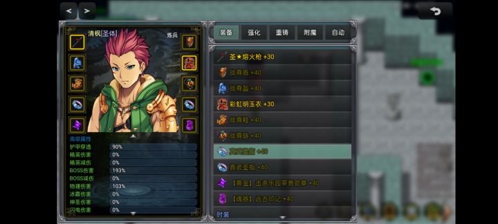 简单的装备配置就能轻松通关外围的最终BOSS 不需要太多技巧~属性到了~一切随意~当然唯一需要你回复属性达到10%左右