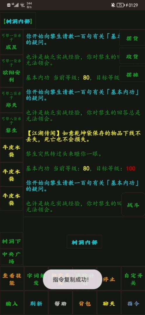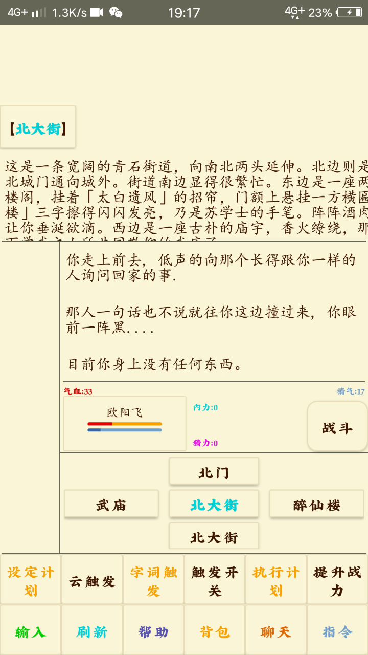 一:计划引入虽然游戏里是使用触发来进行完成工作的,但触发最多只能后台运行,而不能彻底的离开游戏。今天我们要介绍的是离线计划,它可以适当的弥补这一缺陷。为什么说是适当呢?因为使用计划是有条件的,突出的是,它对使用环境具有强制的限制。计划只能在不能战斗,且可以睡觉的房间内使用。如:扬州客栈的二楼。注意是没有行者的那间哦。二:计划相关我们到达了一个安全且可睡觉的环境,我们可以打开指令面板,找到和计