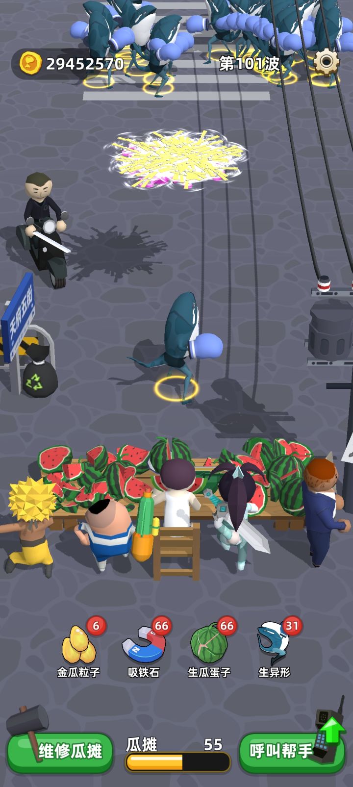 《西瓜摊主大战买瓜人》新版来了!金瓜粒子、吸铁石、生瓜蛋子、生异形都安排上了!对于喜欢挑战的人来说,有了更多的操作空间。特别注意:新版加入了防沉迷系统!祝大家国庆快乐!