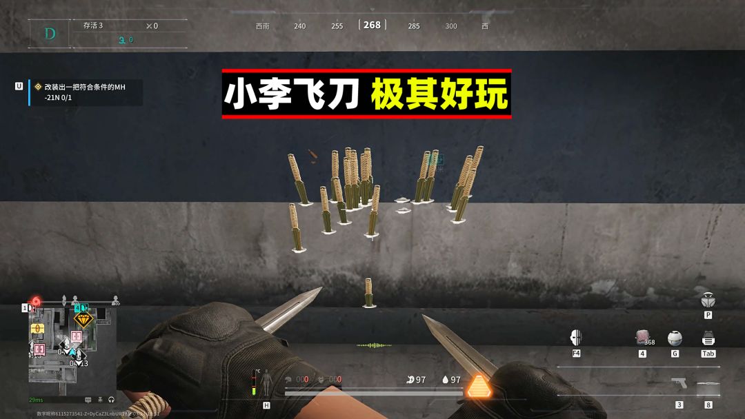 攻速慢,尤其是重击 持刀时移速慢(跑刀推荐用蝴蝶刀) 轻击每次挥刀都有概率挡子弹(不推荐用来挡子弹,概率极低) 使用武士刀的时候会掉帧 总的来说潜力巨大(除了帅和装B没什么实用价值)