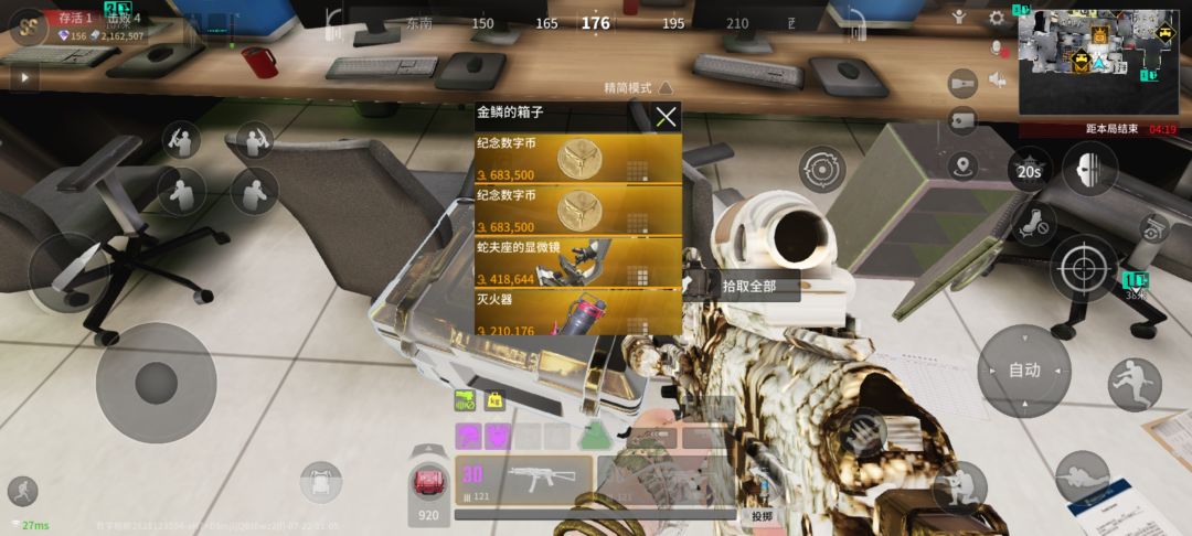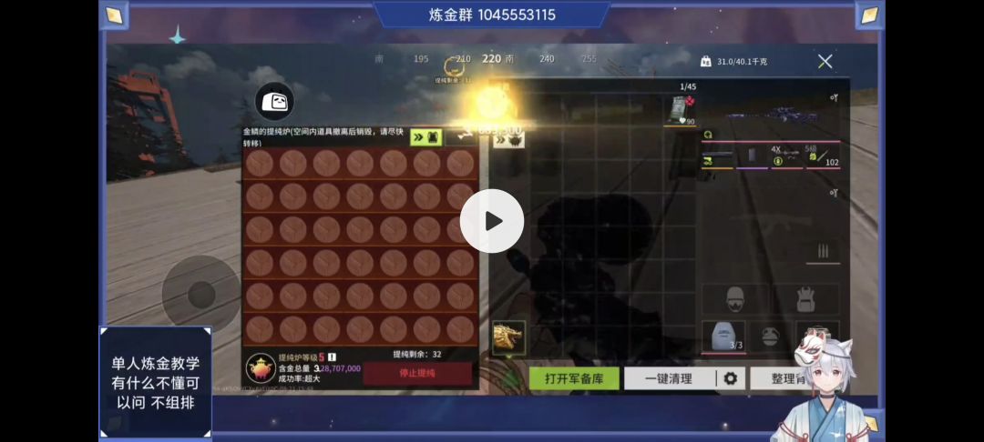 开局选1号复活点,这边离监控室近,然后去监控室藏好大杂,监控室楼下丢个探测球就可以满图搜物资了(之后风暴刷新从监控室重新部署出来,这样大杂就在钥匙房里,安全一点,但钥匙一定要带够,不然大杂锁里面没钥匙就搞笑了)。杂物尽量炼小金,然后多攒一点物资再炼,因为有大杂可以把小金之类的先塞小杂里不怕拿不下风暴刷掉了,搜一波风暴或者俩波风暴的材料就开炼蛋,卡150万或者160万稳定炼蛋,运气够好基本上够炼到撤