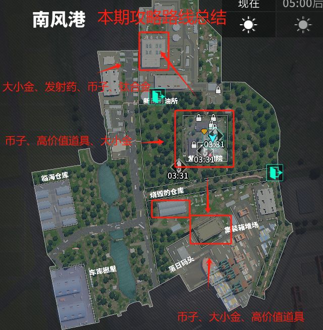嗨!各位萤火虫,欢迎来到萤火攻略团攻略教学内容! 熟悉每一张地图的搜图路线和出金点非常重要,每张地图也需要携带不同的钥匙或针剂,高效地搜图无疑是增加撤离成功率的最好办法,为了帮助每一位玩家熟悉萤火的地图,萤火攻略团将为大家讲解每一张地图的搜图路线和出金点,本期萤火攻略团将为大家讲解南风港的搜图路线和出金点攻略! *南风港解锁等级:5级 辐射尘暴刷新间隔:30分钟,每次风暴过后已拾取的物资点