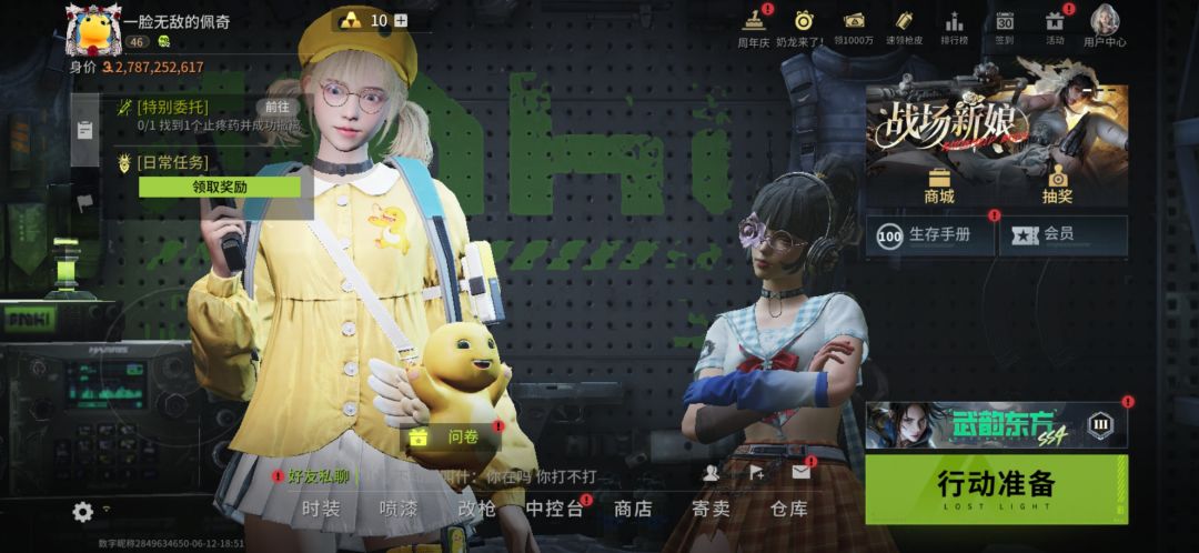 萌新创号第一天一定要做的事情:首先进入游戏什么都不要想 1.只要记住两件事:刷经验和做任务,刷经验是为了解锁这个寄卖市场 做任务,是为了得到这个私人痕迹消除器,这可以解锁你没有的那些物品,解锁以后你就可以在海底商店买了 2.解锁枪械不要选择M4K G416等不然真的会很难。 3.箱包购买优先级: 强化便携战术包(公测可能会有名字区别)60w>四个针包120w>卡包(钥匙门卡铭牌)440w后续针包换