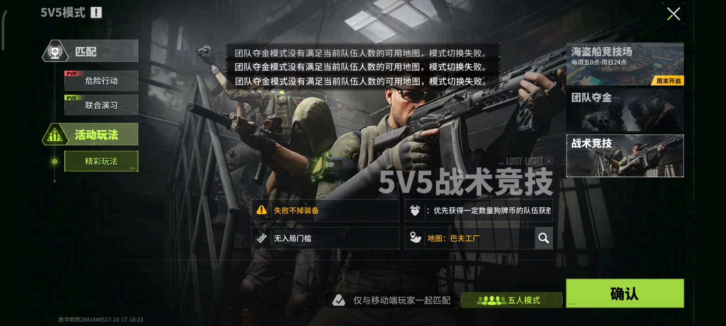 #萤火突击 是bug吗?还是哪里设置有问题,为什么我进不去5v5夺金?