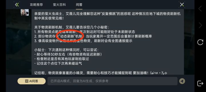 萤火虫存在动态刷新,刷物资的时候我发现物资点没物资,先别着急着走,先等一下,或者跑出去等一下,再跑回来。跑了三四天才明白这个道理,好多次都白跑了。