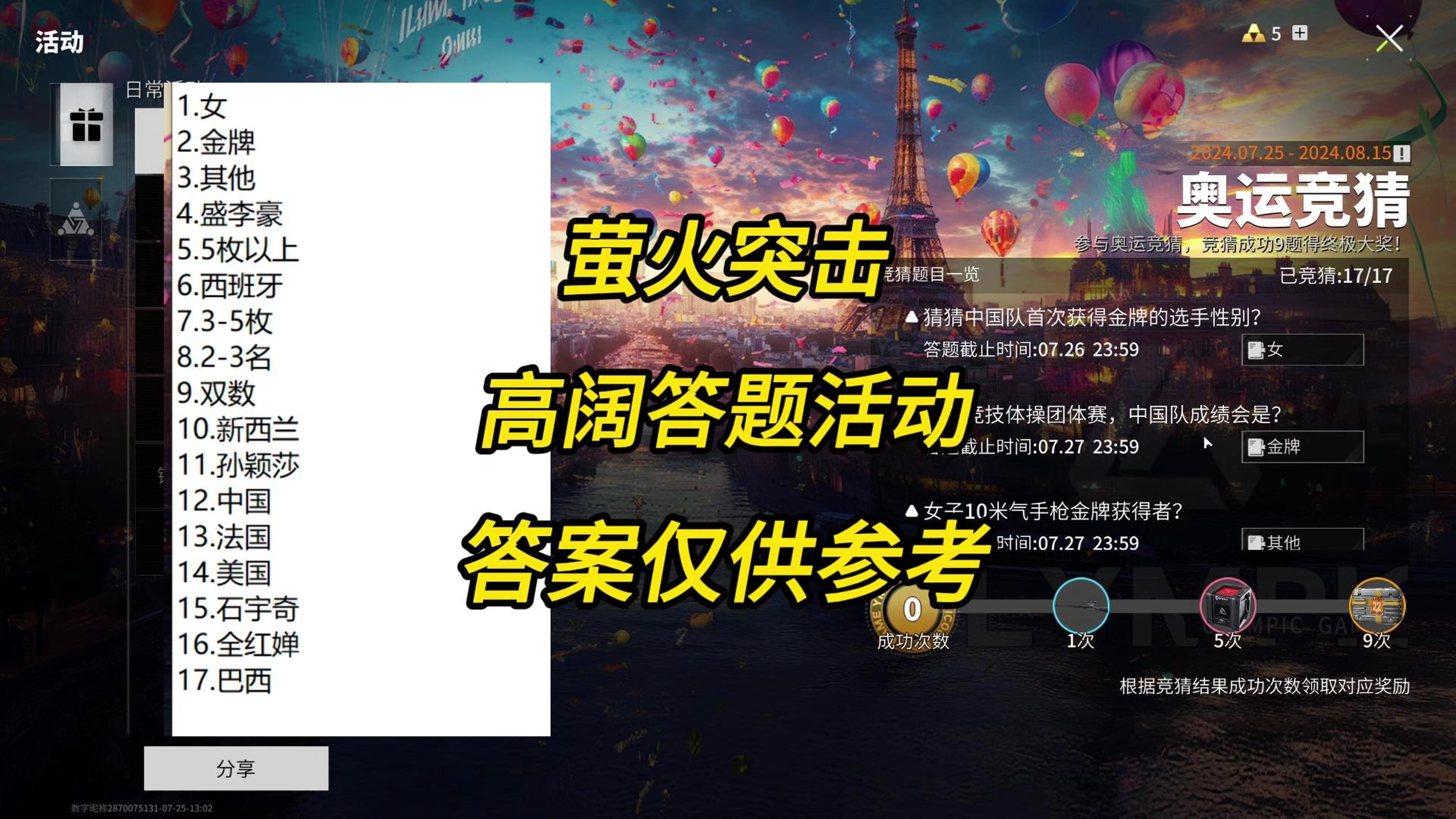 萤火突击答题送高阔啦,还不赶紧来看答案!