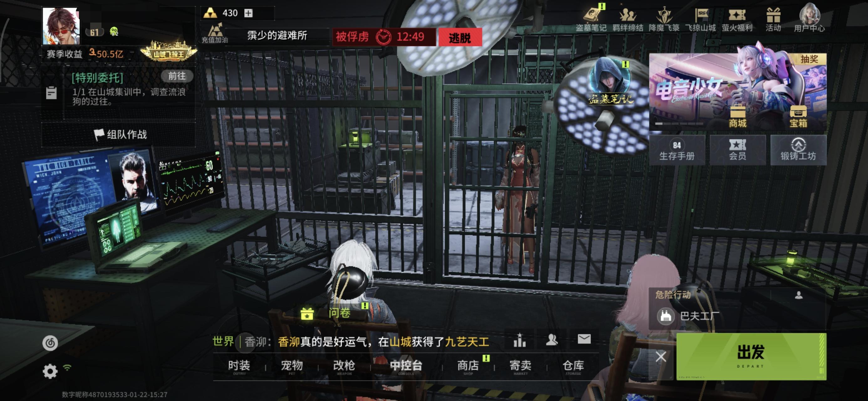 今天上午今天上午和我朋友一起打激战,秋山在别人盒子里打出了一个金龙,之后又与他玩了一会,今天晚上和别的朋友准备打红狙的时候,打了两把到仓库看了一下,结果发现金龙没了,就发现一天的进程也没了,我下午打的时候退线前手册等级具体忘了,那肯定大于50今天晚上下线前看了一下,结果正好是50级