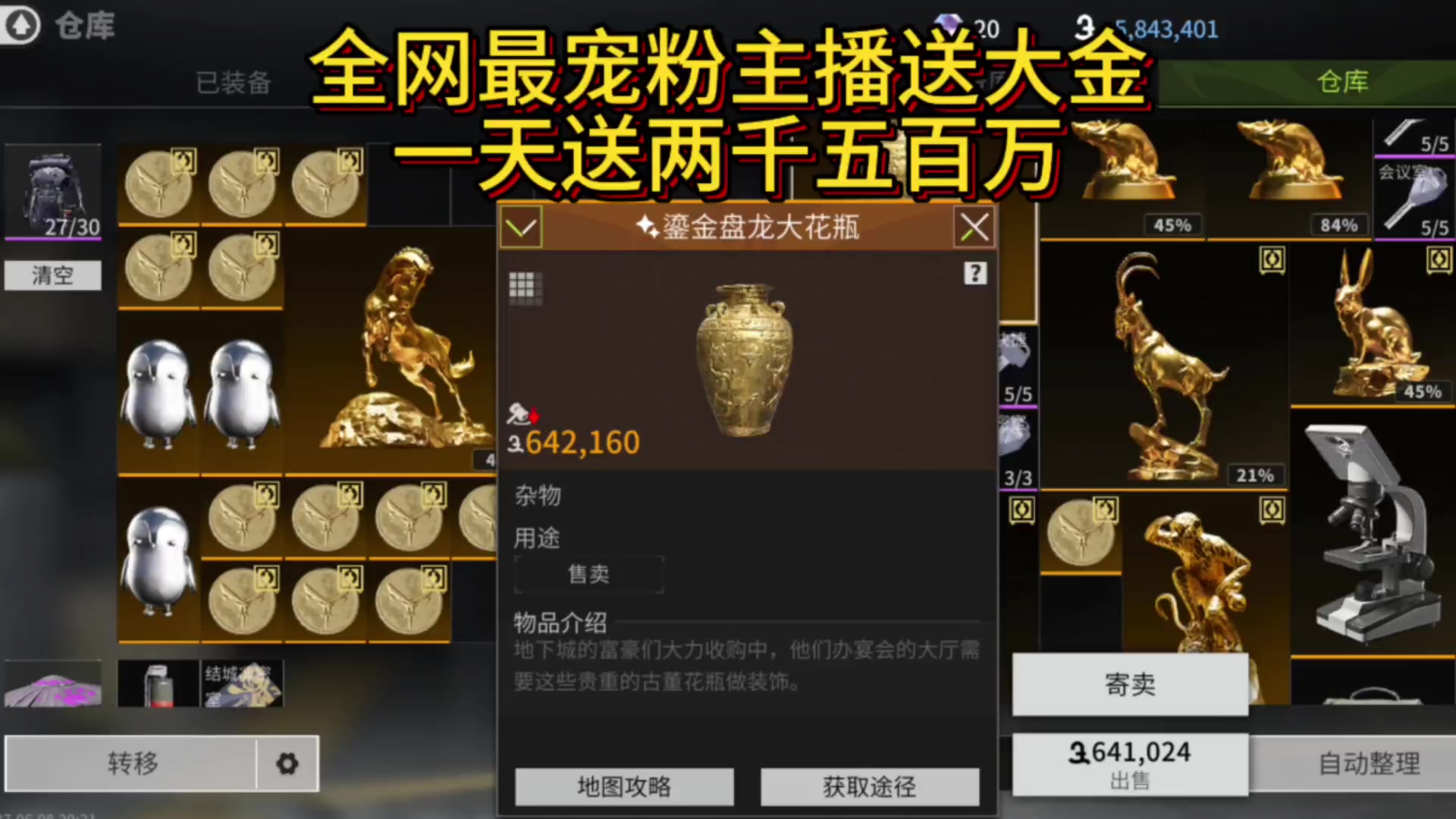 萤火突击全网最宠粉主播,一天白给2500万,仓库大金全给粉丝