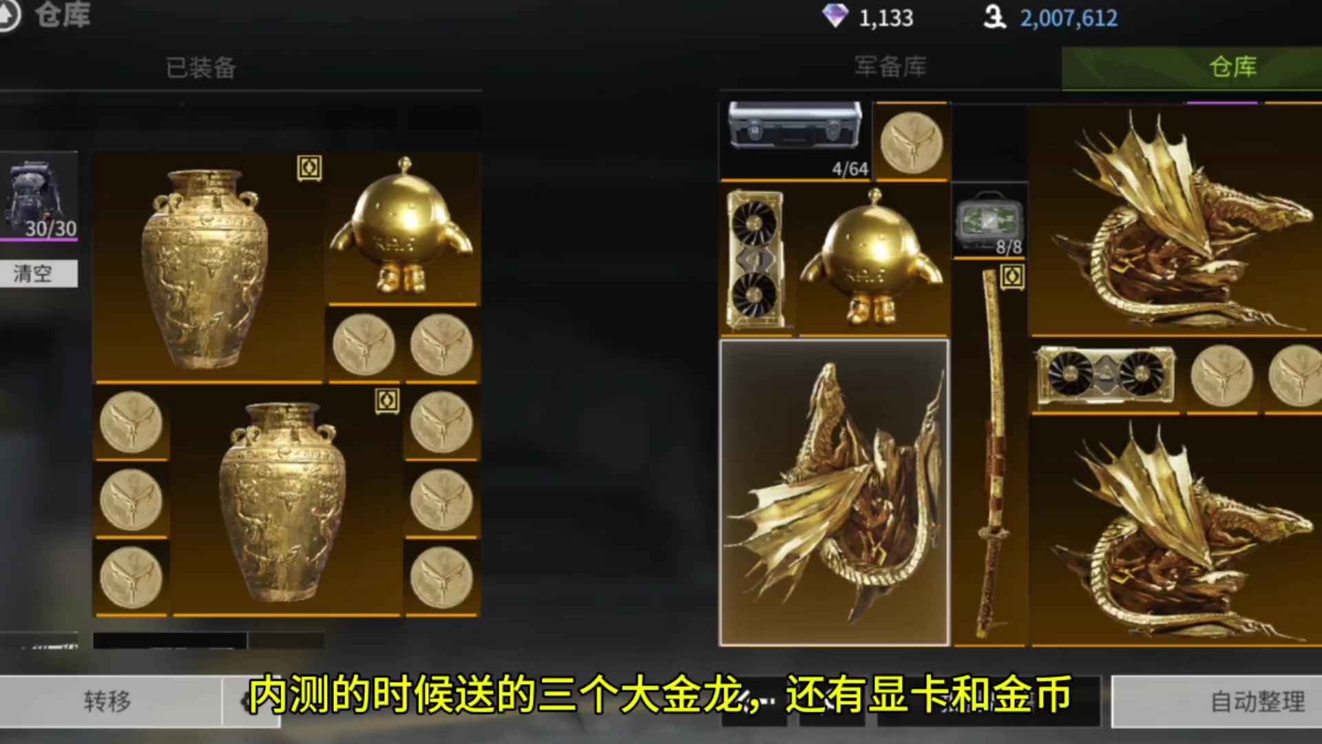 萤火突击白得三个大金龙,还有拿到显卡和金币的大哥