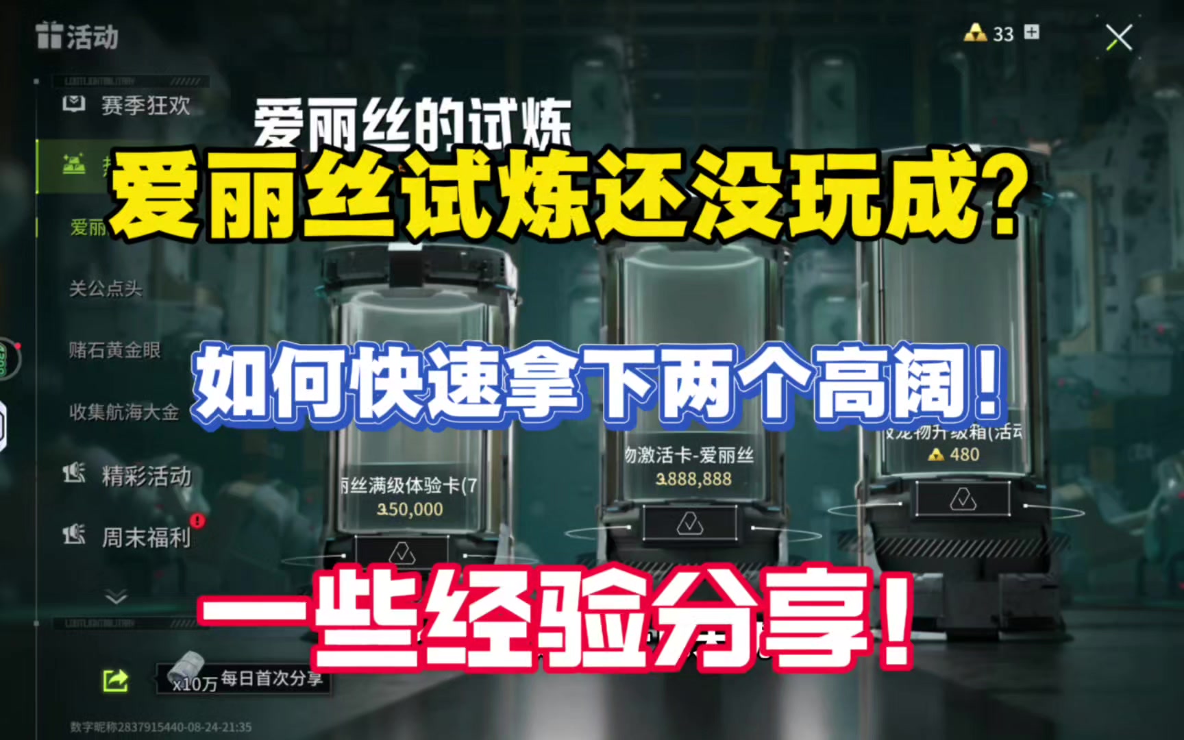 爱丽丝试炼还没完成,分享一些经验快速拿下。