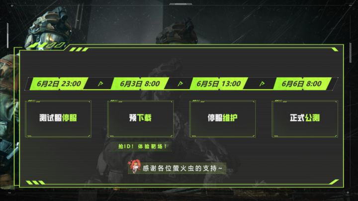 昨日直播最受萤火虫关注的,就是后续预下载和公测的时间安排。 我们将于6月2日23点正式停服删档,已经测试的玩家无需更换客户端,6月3日上午8点安卓开启预下载后,即可重新上线进行角色抢注和靶场体验。6月6日早8点,安卓苹果同步开服。 直播的第二大看点,当然是策划官宣公测当天同步上线的萤火六六突突节,作为当天的绝对主角当然要给大家福利加倍!六六突围,不如六六突突。 手册