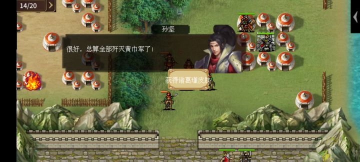 第一关:庐江之战开局我军分为两部分,大部队跟着孙权,小部队在左上方,注意配置。单挑:孙权(统帅点提升1点)—李术(死)对话:无奖励:无彩蛋:凡素银衣(孙权单挑李术)成就:庐江之战—50元宝①孙权进入城内触发剧情,李术挟持百姓威胁,出现两个:1.不顾百姓,直取李术周瑜:也非优柔寡断之;百姓变为敌军2.保护百姓,放任李术周瑜:缺乏历练;百姓变为友军②第城内我军大于4人,四三个敌