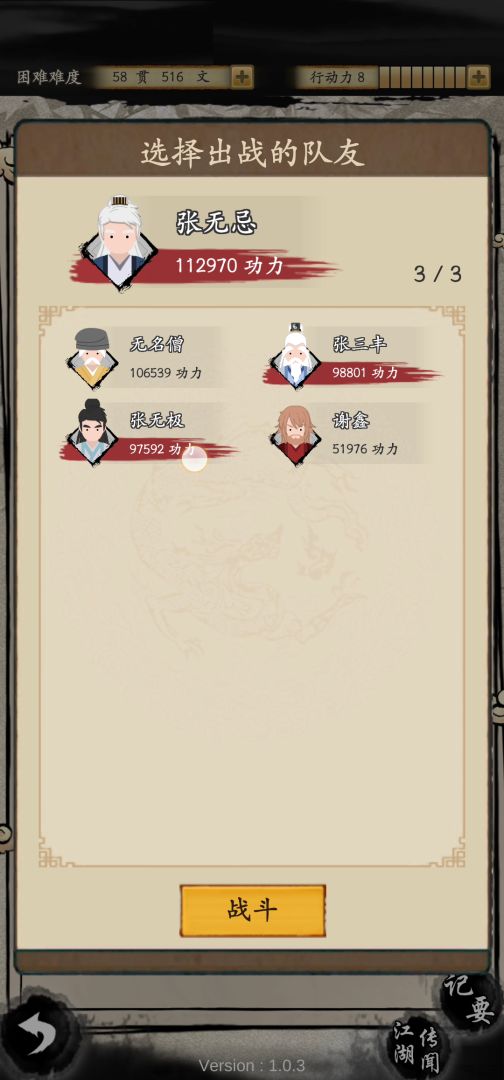 开局阶段:问答推荐“岳飞”和“无为”,增加15名气和侠义,其他随意。可以尽快招到侠客“郭襄”,前期比较强力,而且她任务送倚天剑(目测,最强战力的剑)
