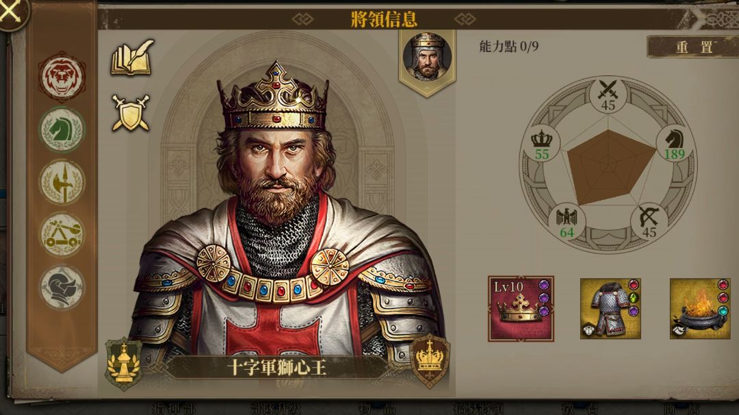 此次在《欧陆战争7:中世纪》中,传奇将领数量将多达19位,传奇将领均有对应的英雄传奇关卡,且都有自己的专属装备。 他,古代欧亚大陆匈人最为人熟知的领袖,史学家称之为“上帝之鞭”,曾多次率领大军人员入侵拜占庭帝国和西罗马帝国。 欧洲之父,法兰克和伦巴第的国王,罗马人的皇帝。自罗马帝国以来,他首度统一了西欧大部分地区,他所建立的大法兰克被称为加洛林帝国。 英格兰王国的国王,因勇猛善战而有“狮心王”的称