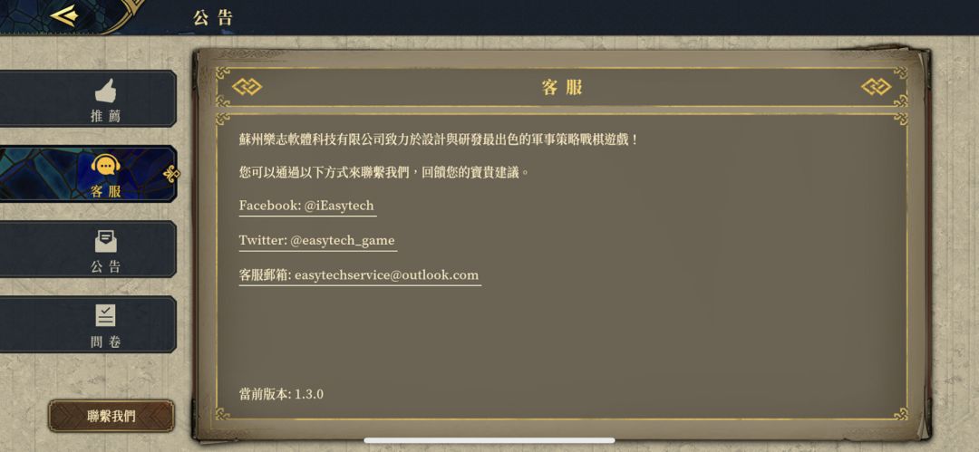 前言: 刚看到有小伙伴说游戏已经更新,赶紧上游戏更新了一波。 正文: 外区ios版欧陆战争7:中世纪现已更新至1.3.0版本(这次没更新预告直接更新了,比对上次更新这是征服模式更新没有战役关卡更新重要吗,也可能是没有氪金项目更新的原因吧,哈。。😼)。 e社官网有更新内容,全英文版,有兴趣的小伙伴可以去了解一下,下面说一下更新后刚刚体验到的内容。 1,新增用户协议机制(随着外区ios版本和安卓国际版