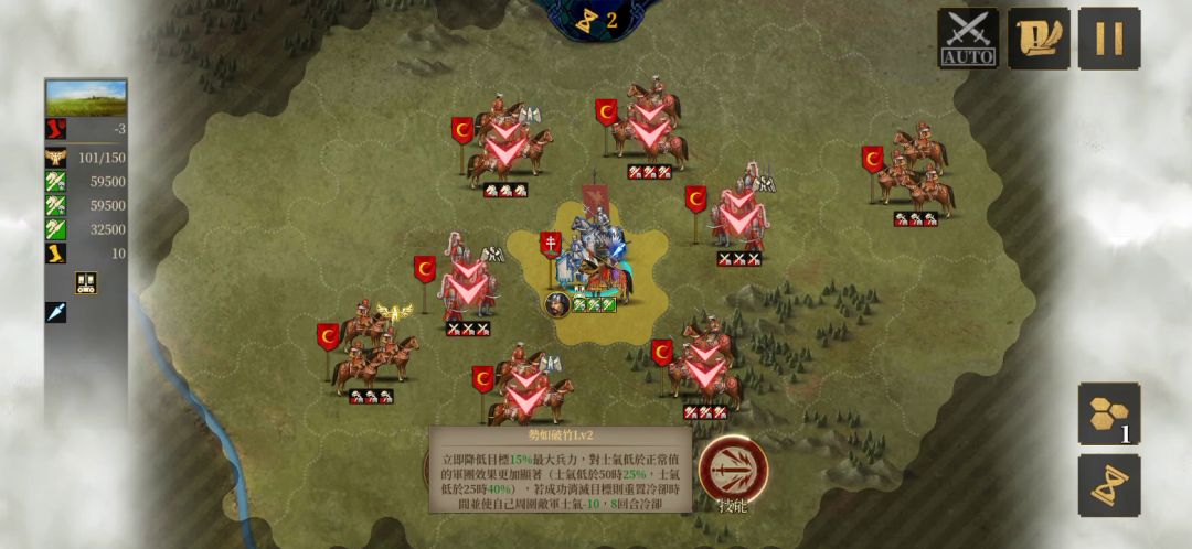 本关其实不难,只要善用主动技能即可。 通关要点: 1.利用主动技能特性,击杀时刷新冷却。故每次使用主动时务必保证击杀。 2.主动技作用士气线是25,25士气以下时伤害为40%血量。务必保障对方士气为25时再使用主动技。 3.如何降低对方士气。第一 ,波兰翼骑兵每回合降低周围10士气。第二,主动技击杀时降低周围15士气。第三,主动攻击冲锋时降低敌方15-20士气。善加利用这三点即可。 4.本关可以不
