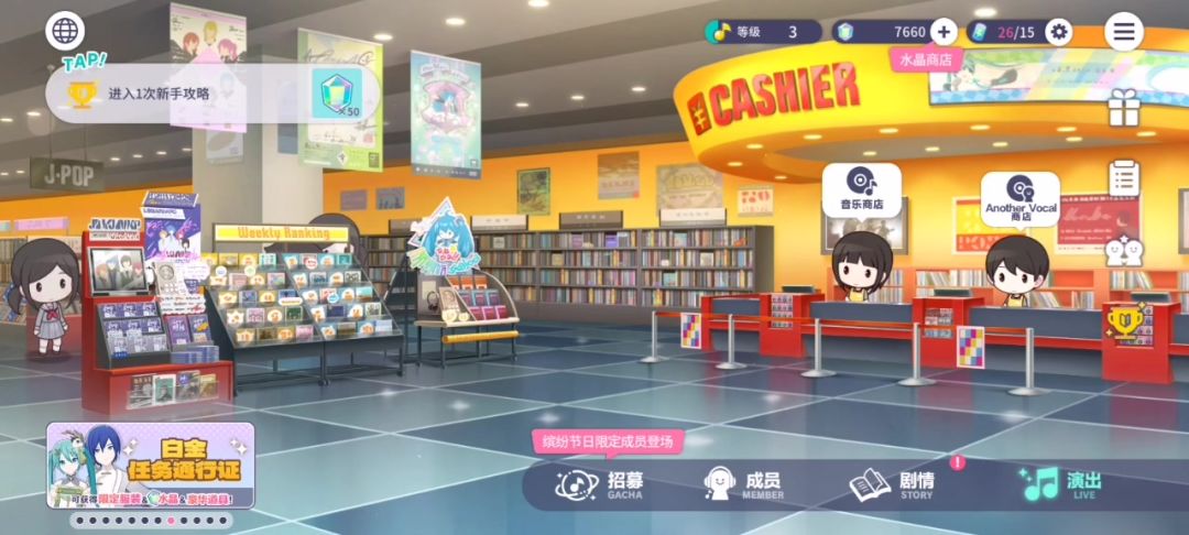 ●众所周知初音未来缤纷舞台是一款集音游与养成的游戏。下面将带你速览一下游戏中的一些普通水晶获取方式。 ◎常规的演奏音乐获得,评级越高获得的越多。 ◎每周选取角色进行挑战也可以获得 ◎角色整体的好感度等级养成这个量最大,但需要一定的时间收集。 ◎除了主线剧情,还有活动剧情以及世界的回响系列剧情。这里特别注意,除了主线剧情能跳过。像活动剧情和世界的回响相关的角色剧情跳过将无法获得奖励。 ◎新手玩家必拿