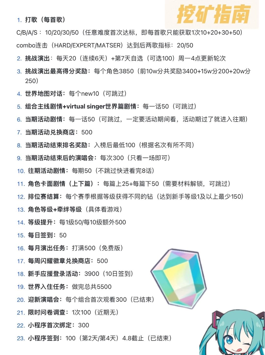【初音】挖矿指南、道具指南、提分指南合集