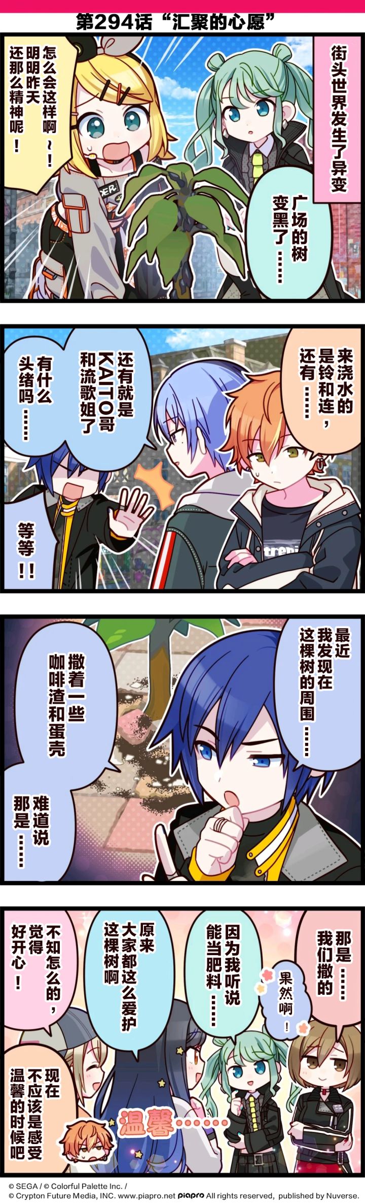 尊敬的各位「世界」居民:今天是关于Vivid BAD SQUAD的成员们和初音未来、镜音铃、MEIKO、KAITO的小故事~第294话「汇聚的心愿」🌲今后也请多多支持《初音未来:缤纷舞台》!立即前往「世界」>>>加入官方社群>>>QQ频道:搜索“初音未来:缤纷舞台”立即加入QQ4群:921716684QQ9群:554332731