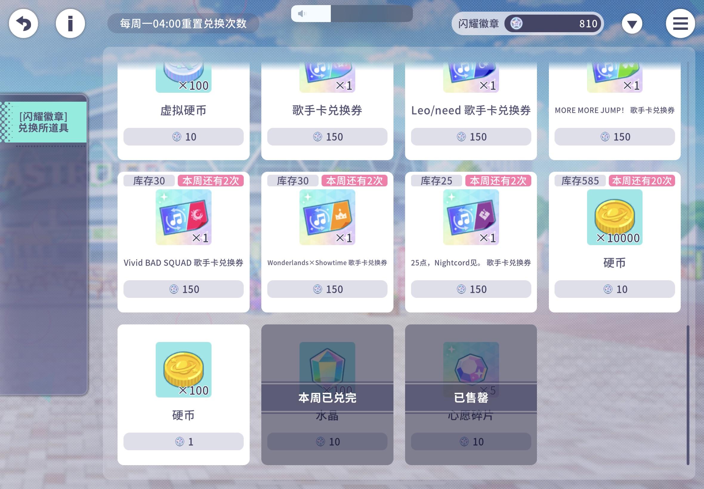 之前都可以换,这两周都是显示售罄呜呜呜以后是只能抽卡分解获取了吗? #初音未来缤纷舞台印章任务 #初音未来缤纷舞台初音未来缤纷舞台 #初音未来缤纷舞台攻略 #初音未来缤纷舞台萌新