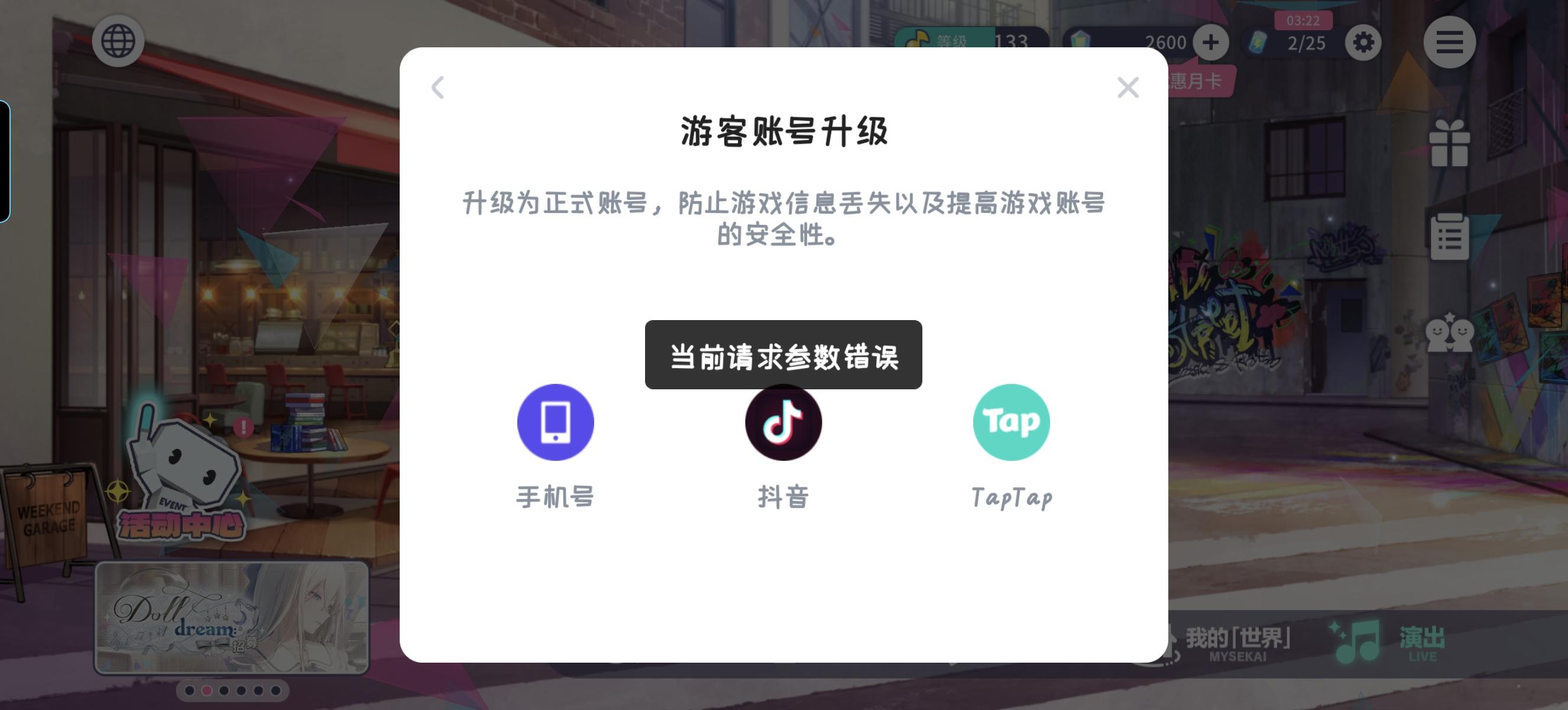 之前是用抖音登录的,抖音注销了就解绑,变成游客号之后,绑抖音也不行tap tap也不行手机号也不行,一直显示参数错误.这要怎么办?T T