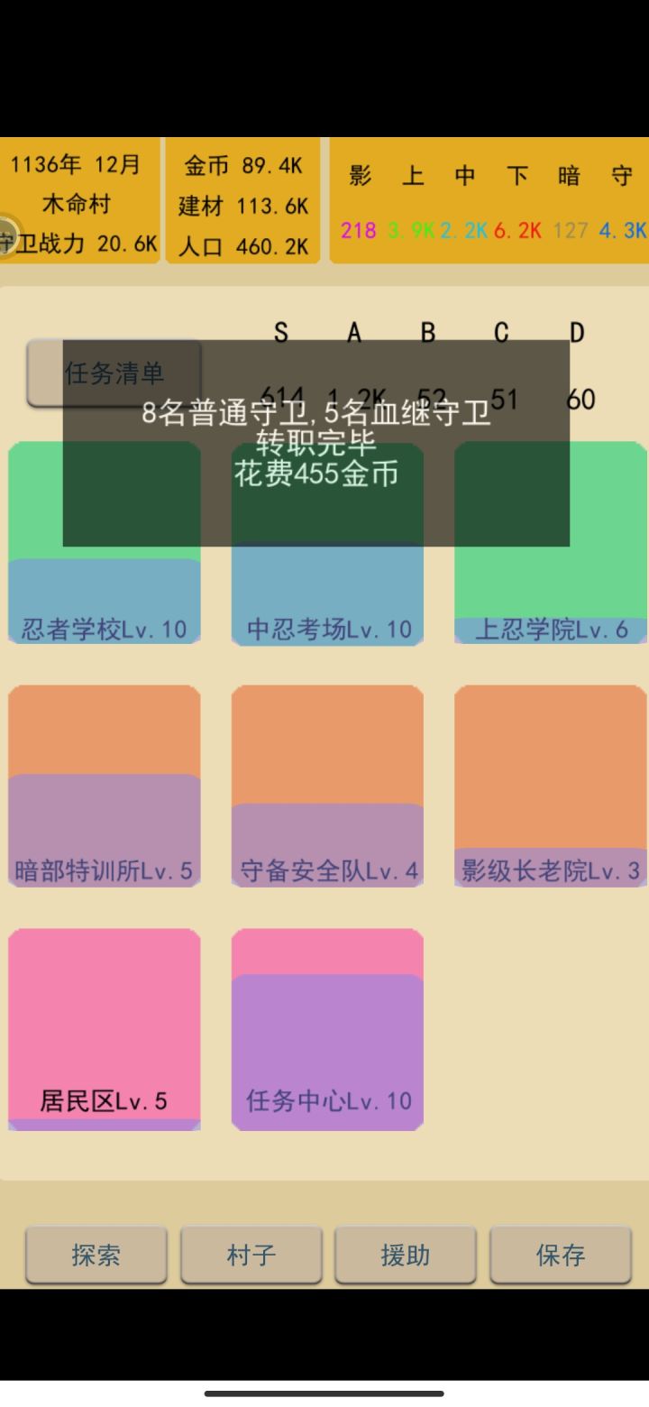 玩了两个小时,前中后期都不要做S级任务,优先升任务中心,中期用暗部偷钱,就是太单调了。