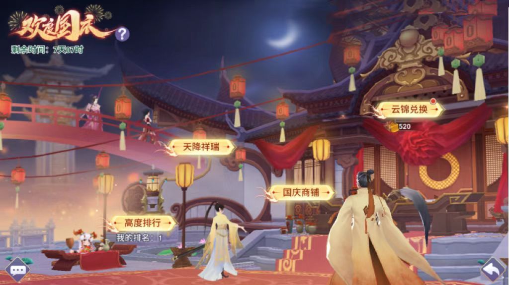 祥云献瑞、紫气东来,人间佳节又至~身为修仙之人,不仅要一心求道,更应怀苍生、济天下。正恰逢盛世年华,道友不如与瓶儿共同游赏这大好山河,共同祈愿天下太平安康! (实际内容以游戏内为准) 活动时间 10月1日00:00-10月5日23:59 活动内容介绍 【紫气东来|天降祥瑞】 仙鹤祝寿,祥云送福,共献人间祥瑞! 活动期间,道友们通过日常玩法和礼包获得活动道具——祥云、仙鹤,用以翱翔云间。达到飞行指定
