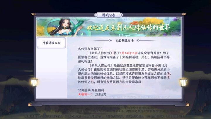 《新凡人修仙传》1月13日 预下载登录问题公告