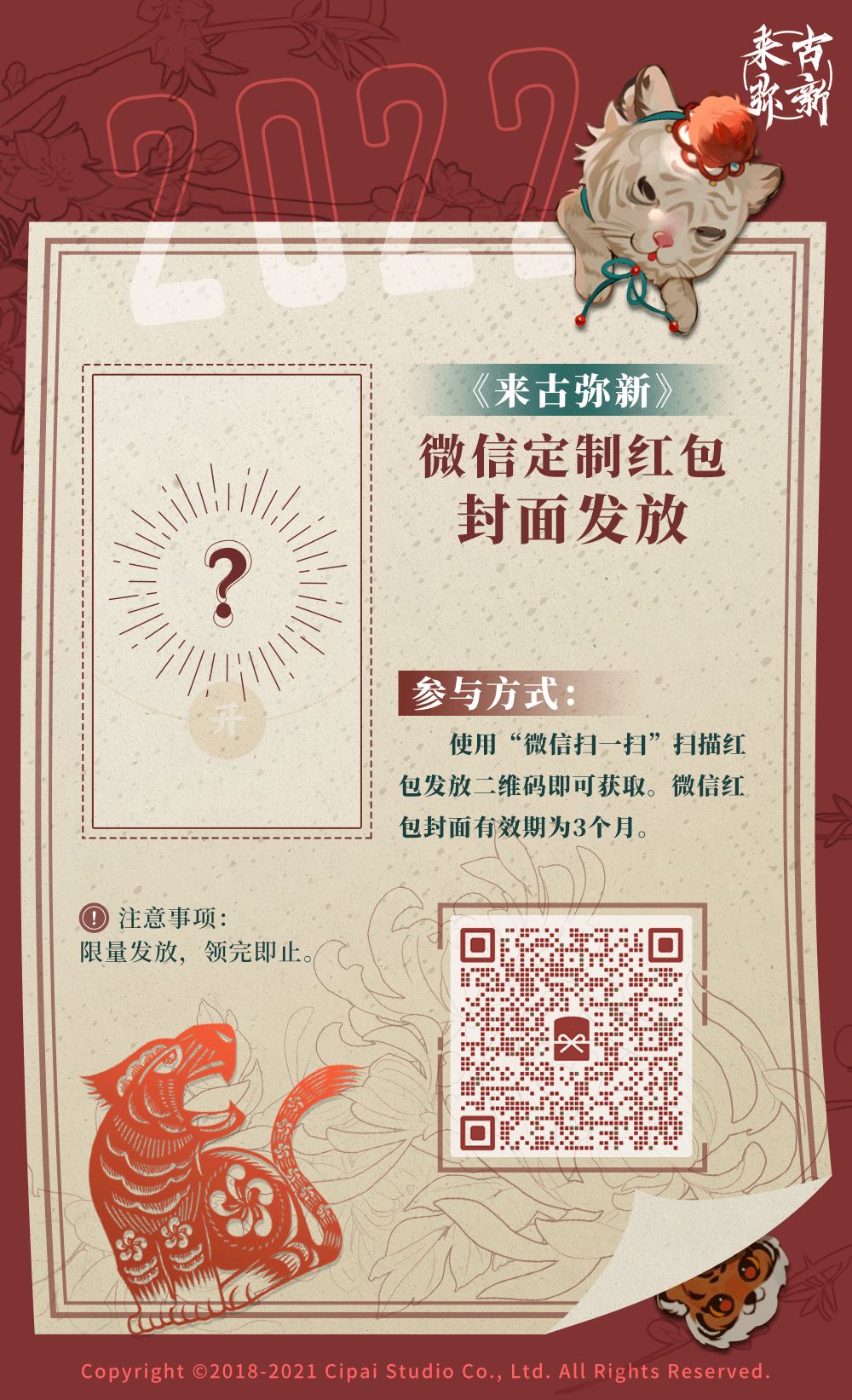 基金会商业部为收藏家们加购的微信红包封面又来喽,还是老时间[许愿虎]今晚20:00记得扫码领取哦