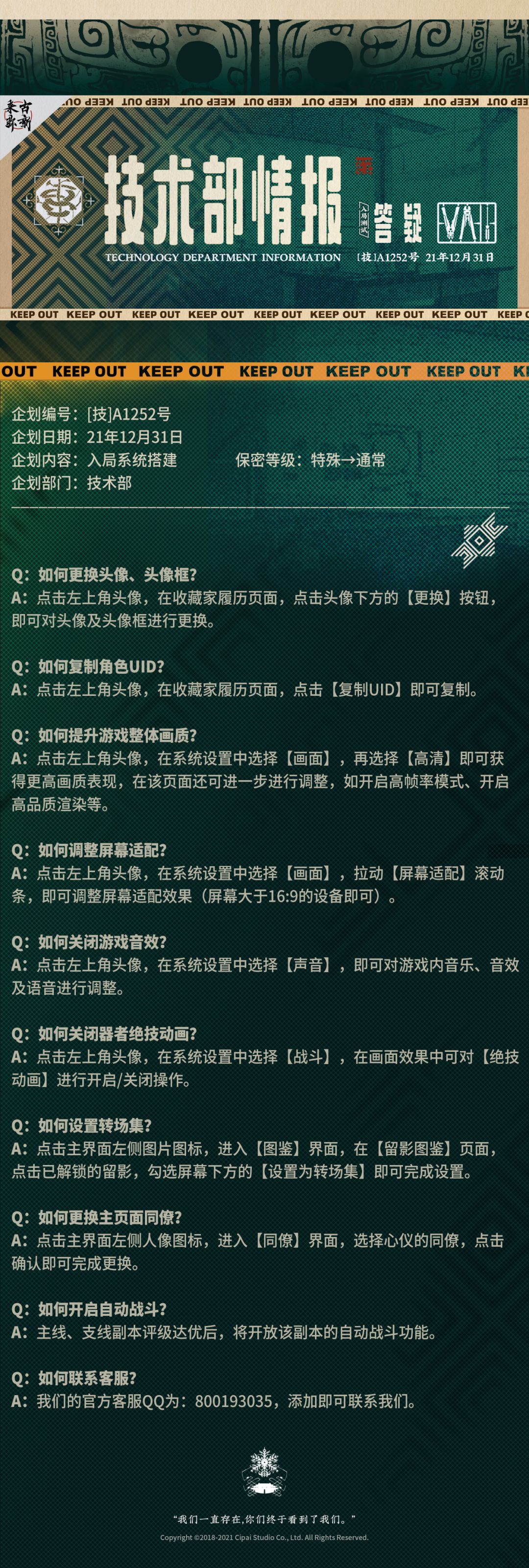 技术部企划更新:【入局测试答疑】发布。 备注:12月31日10:00正式开放首次游览,请收藏家做好准备,欢迎来到冬谷基金会。