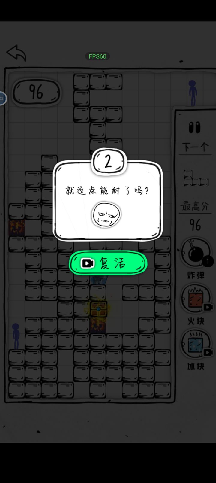 💡游戏创意:俄罗斯方块加了一个杀死火柴人的额外玩法,还是比较有意思的,不同颜色的火柴人技能应该也是不一样的,感觉红色的比较难杀。