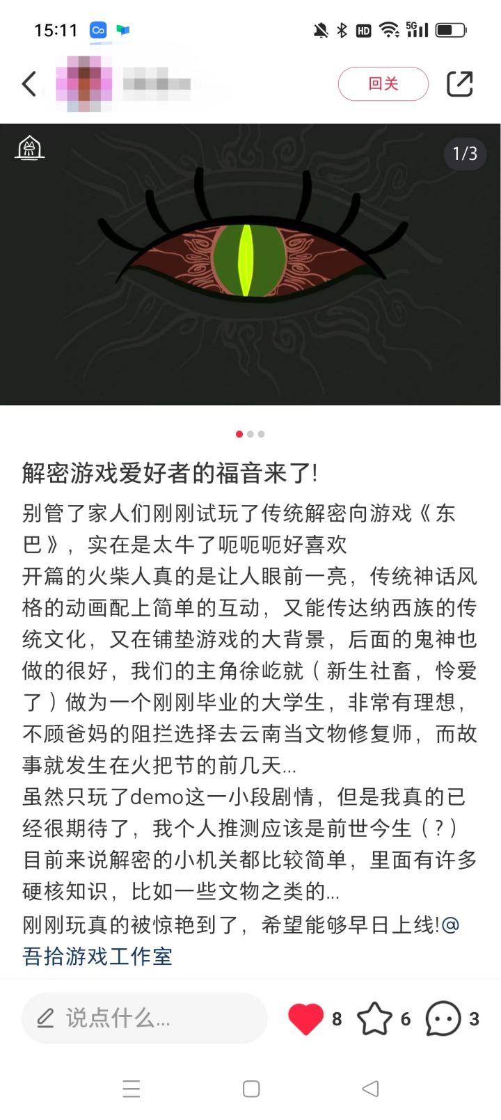 故事主人公徐屹是一名修复师,有一天他被被赋予修复破损画卷的重任,却意外地被卷入画卷中的奇幻世界。游戏已上架steam,目前售价6.6元!#游戏种草计划#攻略#游戏安利#单机游戏#Steam游戏#解谜游戏