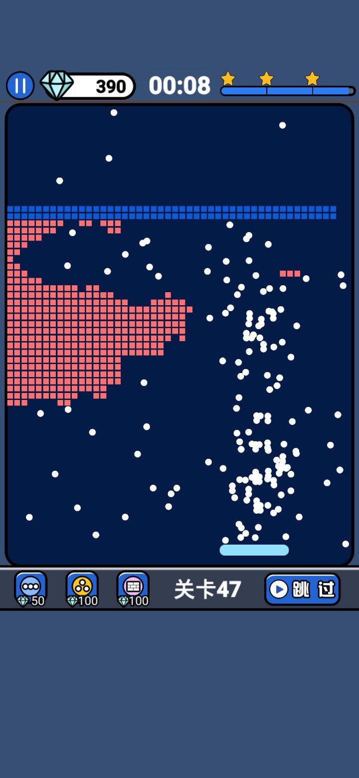 广告太多,还有bug,47关这三个砖块打不掉,这么多球都没反应,笑死
