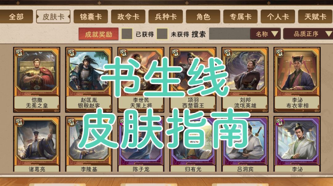 ————书生线各皮肤的评分评价及用法指南———— 介绍:本攻略将从专属卡、个人卡、性价比等方面对书生线可能用到的各皮肤卡进行评价和评分。评分从高到低分为S A B C D 五个等级。 评分将以强度和泛用性为标准,两者各占一半,强度高但就业面窄的分数也不会高,反之亦然。 为了各位的眼睛着想,全皮肤评分表放在本文最后了。 ———————————————————————— 第一部分:金卡指南 1.李隆基