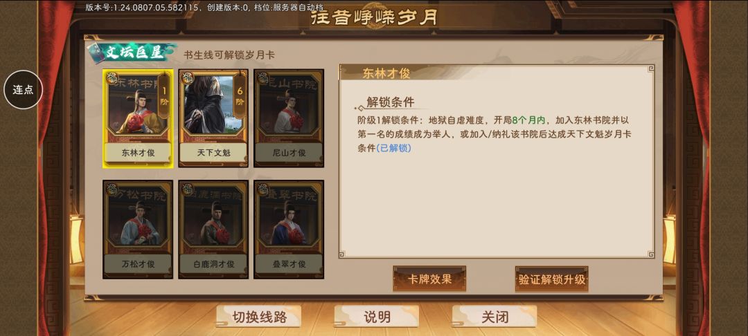 大家好我是阿昂,书生线或者说文官线,是游戏里一种比较主流的玩法之一,那么困扰新手们已久的问题是什么呢,怎么玩,怎么玩好,那么就让阿昂带大家来看看吧! 文官要怎么玩呢,主要就是三点,入院,读书,论战,这三点看似不主要实则还真有点用,入院是必然的,不入院不能考功名,那么现在的书院只开放了三个,算上翰林是四个,而前三个里只有两个能加入,分别是,京师叠翠,山东尼山,有人问了开放了三个只有两个能加入什么意思