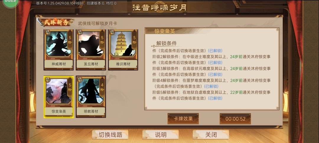 关于武侠五阶岁月卡粗浅攻略