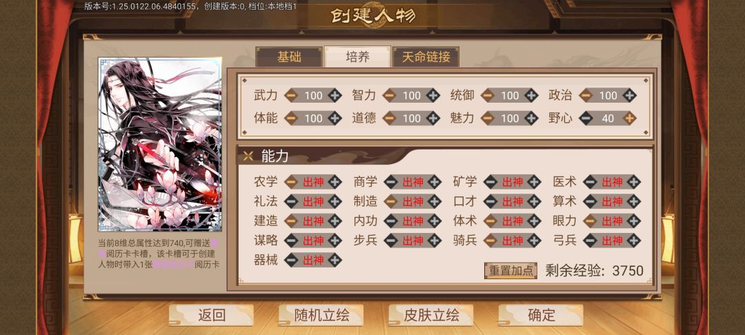 开局自由模式-大明王朝-文坛巨星;人物用庞统注意要解锁红书九章算术;文学卡牌我只有几张论战卡有用没有读书卡;随从随便带一个;注意难度:地狱自虐;其他设置:书生门第;学科选择算术,经历要刷学识+100和中级论战技;进游戏以后选叠翠学院。第一个月先读书到深夜,然后去东城区-隐士-获得副职游士;再学到第二个月凌晨去书院里找每个人点进去智取身上的书拿过来学了,基本上可以拿好几本。要熟读红书和绿书就有两个技