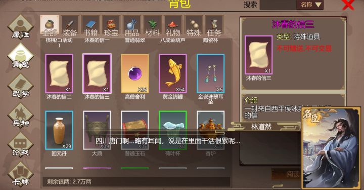武侠线,先入少林,做了救沐春的事件,然后判门去发丘,然后判门当书生——>文官刷论战属性,然后来桃花岛,定在桃花岛长老。可以正常过剧情妃暮铃或者其他需要武侠身份的剧情和事件,但是来到四川郊外无法触发沐王府的事件。理论上我现在是武侠应该可以续剧情吧,我也不知道是不是屡次判门的原因……但是我看桃花岛的武学交流功能会特别的存储判门的记录,所以武侠线理论上应该是兼容换门派的吧?书生线狐仙婴铃到浙江之后的故