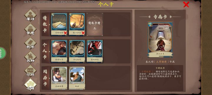 有没有会打武将岁月卡然后自己卡不多的兄弟,帮我打个滇边晓将就行了,是在玩不懂武将线,又想玩黄得功武侠书生卡很全,但是因为寒假才回坑之前的老牌金卡不是很齐,卡槽也不是很多,不嫌弃的话打完岁月卡也可以继续一起玩。