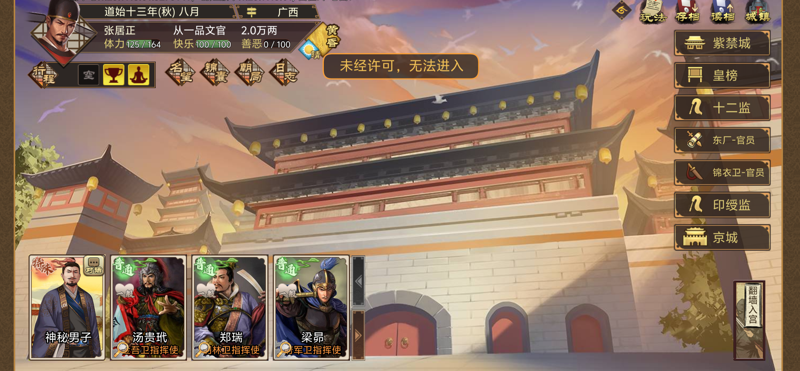有bug啊,我锦衣卫的人都招揽完了,却不让我进去,还未经许可?