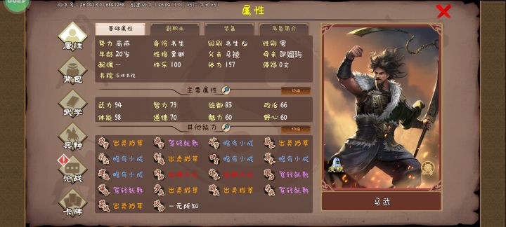 平民开,阅历卡:文魁+武当(张三丰天命)个人卡羁掳伏利或沈万三/严世蕃拿聚宝盆其他看各人卡包出身111,刷个中级论战计+宅院建筑等级属性开文教征服,中原文化,出生地京师副职业:商人+镖师+探子/郎中(准备结束,开启仕途)-----------------------------------------开局(先走书生线后期舒服些,不想麻烦的直接进翰林院)刷钱刷豪宅,加叠翠书院,第二天文魁选(秀川,