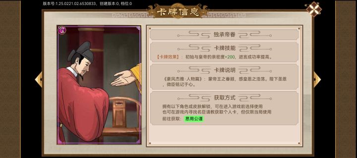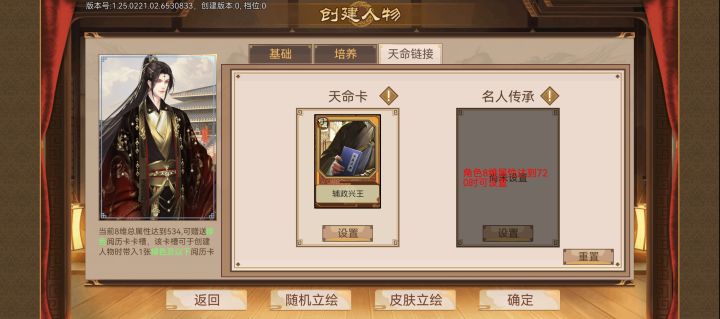 ——————辅政兴王+独承帝眷=一步登天!让你开局即巅峰!——————如果只想当官,不想读书的话,可以走这个捷径,毕竟书生文官线想升到超品,墨迹的很,游戏时间几十年,操作时间几小时,甚至更多。不如花个几分钟,开局即巅峰。(之后依旧可以逼宫等大统)——————①核心准备:姚广孝---黑衣宰相---辅政兴王如果你有姚广孝的黑衣宰相,可以姚广孝开局,或者你不喜欢这个老头的立绘,可以自建人物,